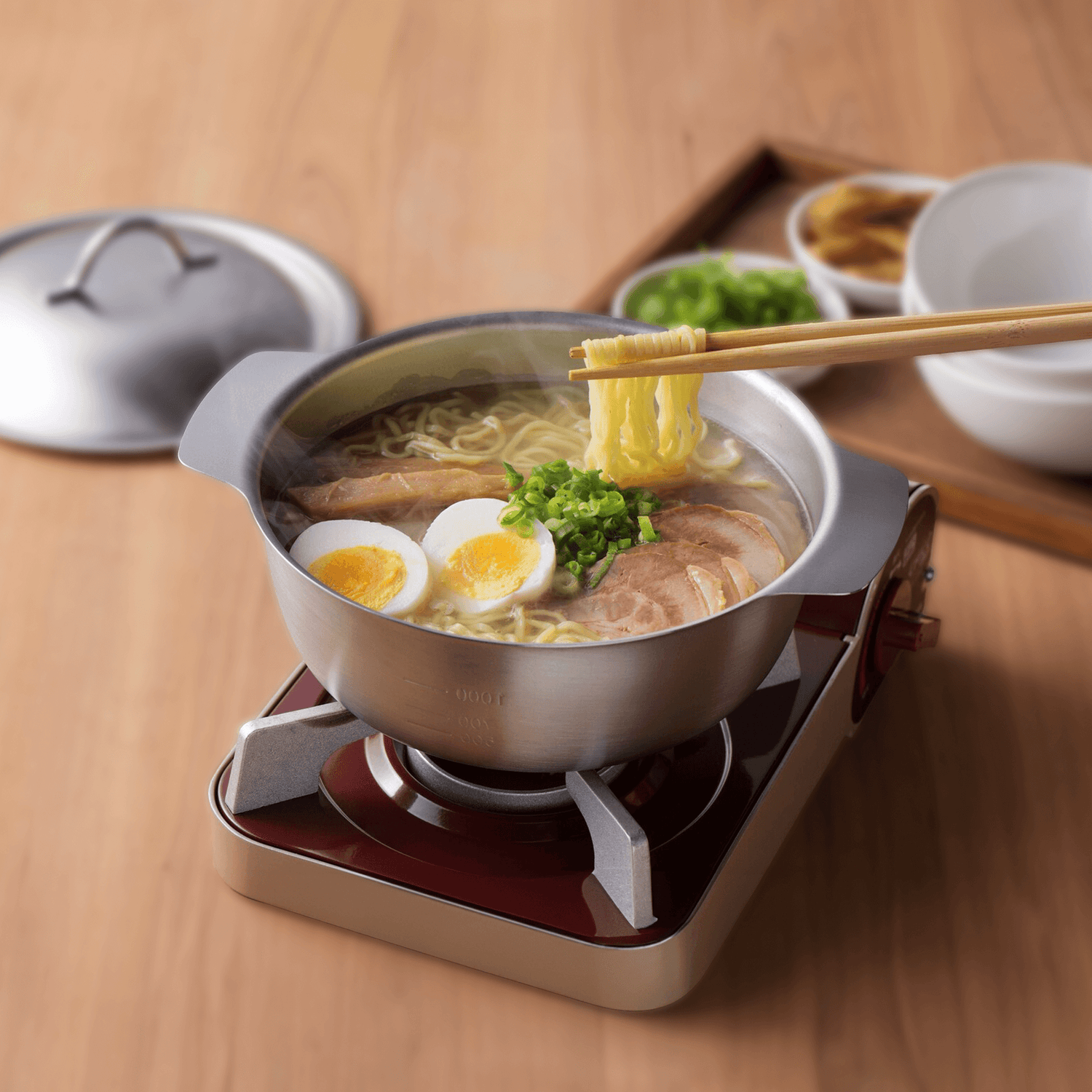 This compact two-handled pot from Yoshikawa, renowned for their traditional stainless steel craftsmanship, is perfect for serving 1-2 people. Its practical size makes it ideal for preparing hot pots, ramen, and more. The interior features convenient measurement markings, allowing you to quickly gauge the optimal water level for 1-2 servings. Compatible with electric stoves, it’s a versatile addition to any kitchen.