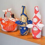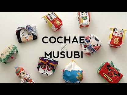 Checkered pattern is one of the traditional patterns in Japan which signifies eternity, growth and prosperity. Also there is a saying that the red daruma could dispel evil spirits, and maneki neko (beckoning cat) could bring good luck. This Furoshiki is suitable for any cerebrations and use as a small bag.