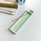 An elegant celadon porcelain incense holder crafted by Kousaido. The serene blue-green tones of the porcelain complement any home decor.