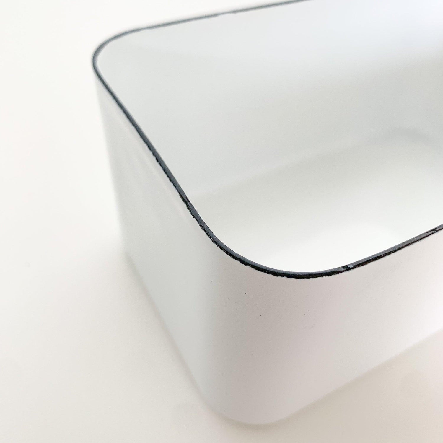 Enamelware is made by molding steel plate (iron), applying a glassy glaze, and firing it at a high temperature of 850 degrees Celsius.