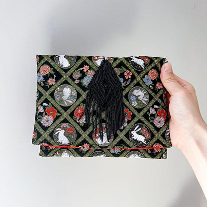 Clutch bag handmade by our local artisan (Ontario Canada) with vintage Nishijin textiles.