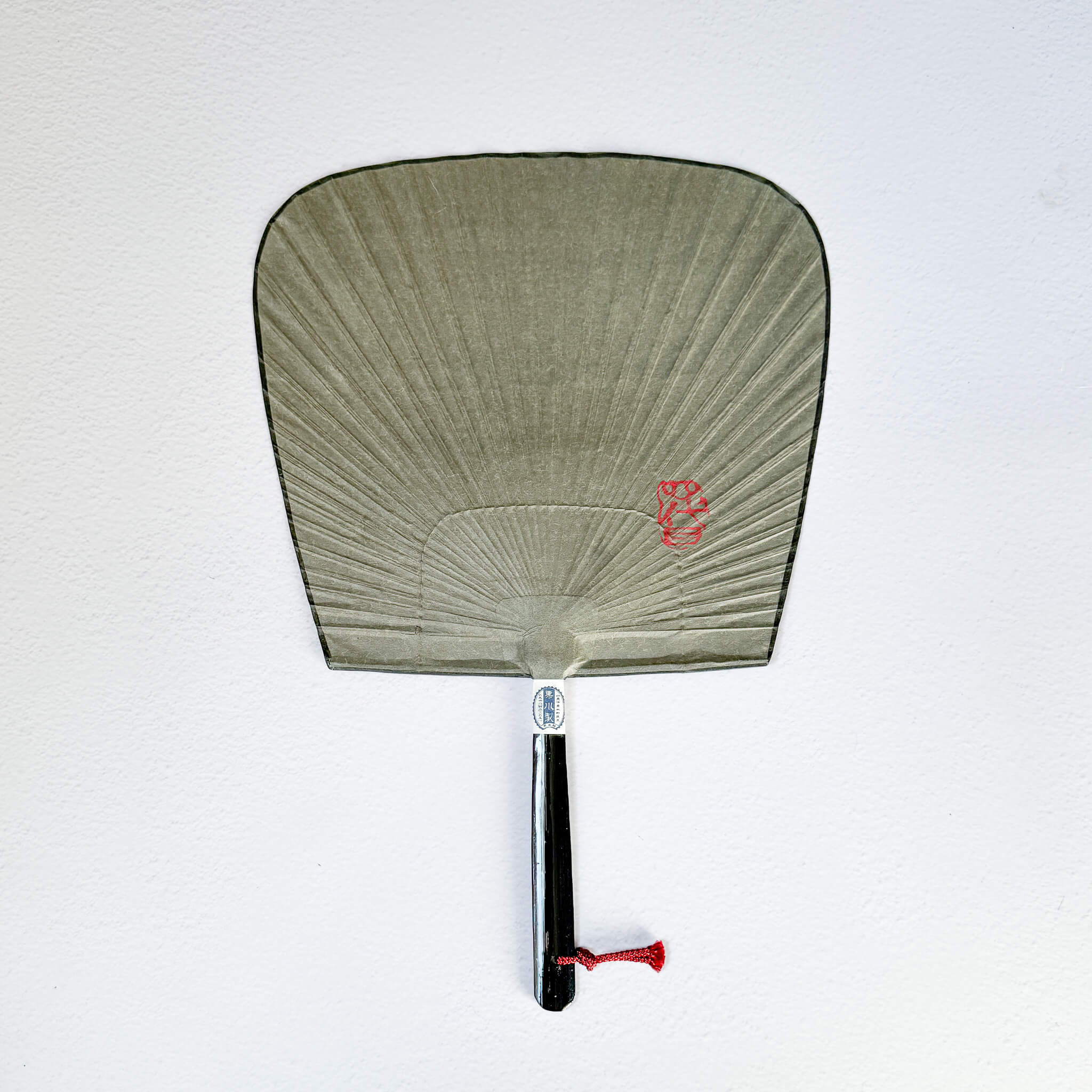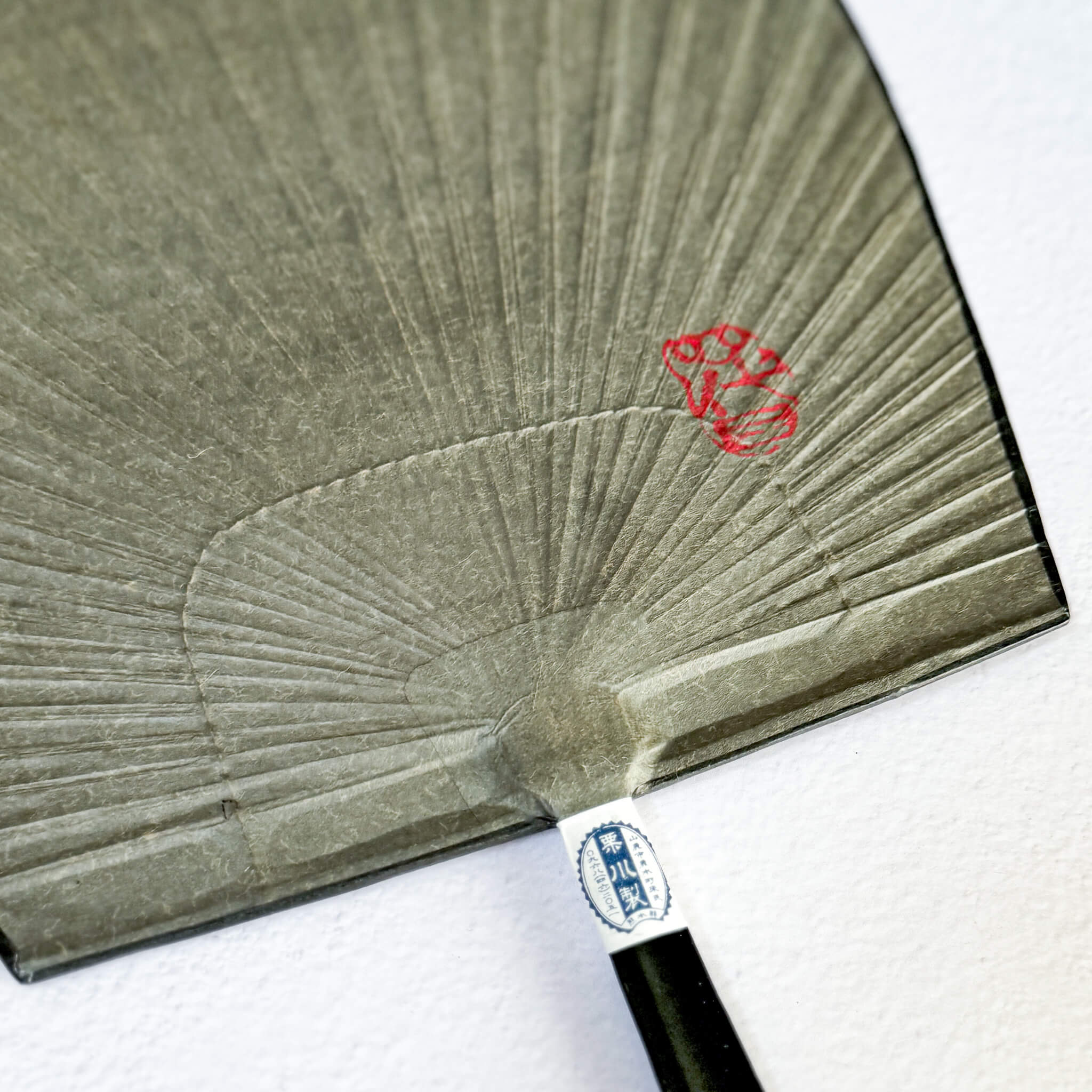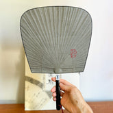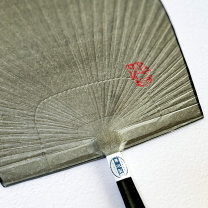 This washi paper for the fan (Uchiwa) is first hand-dyed using traditional sumi (Black) ink, then finished with a protective layer of persimmon tannin, known as kakishibu, which enhances its durability and gives it a warm, natural sheen.