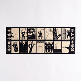 This tenugui features classic techniques "Ninjutsu" and the tools used by ninja, illustrated in a fun and approachable way. While enjoying the design, you can also learn a bit about traditional ninja skills.