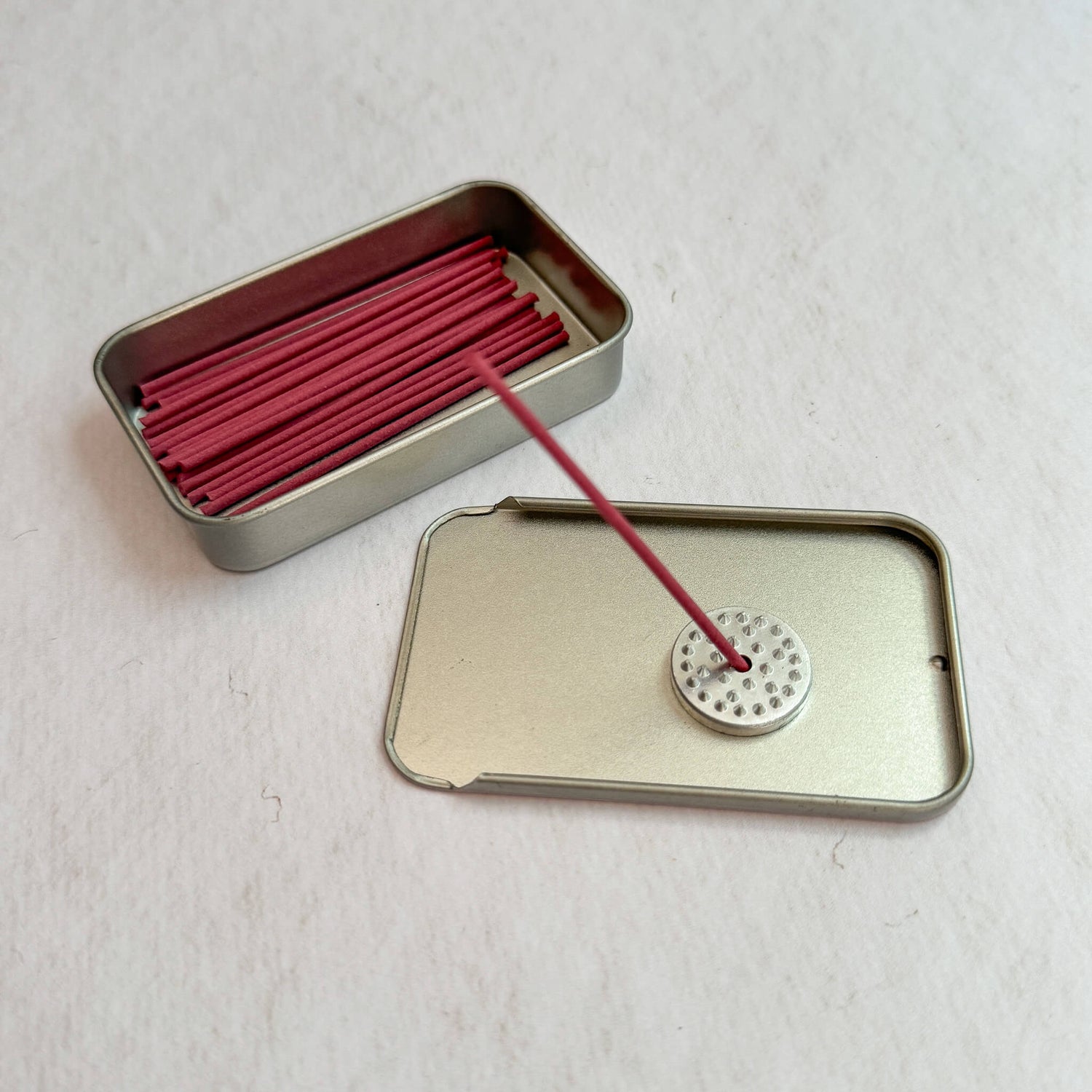 This stick incense, crafted in collaboration between a Japanese apparel brand and the renowned Kyoto incense maker Kosaido, combines timeless craftsmanship with modern convenience. Packaged in an aluminum tin, it’s perfect for travel, outdoor adventures, or camping, allowing you to enjoy soothing fragrances wherever you go.