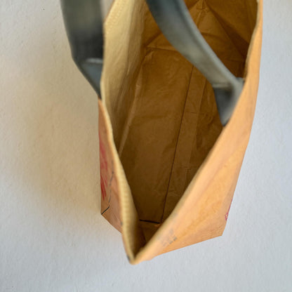 This handbag, created by an artist from Kyoto, uses recycled traditional kraft rice bags from Nigata Prefecture, Japan.