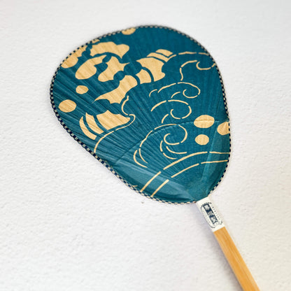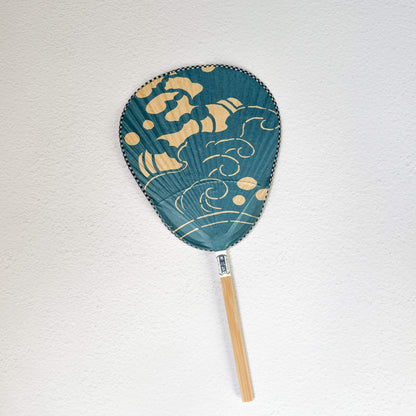 Bussen Ise-Katagami Shibu Uchiwa Fan – Light Blue Wave Pattern | Kumamoto, Japan