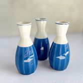 A classic, casual-style sake tokkuri (flask) from Japan's mid-century era. These 1-go (approx. 180ml) ceramic flasks were mass-produced domestically and commonly used from the 1950s to the 1970s. Their nostalgic design pairs beautifully with vintage or retro-inspired interiors. As these are vintage items, some may have interior stains, please wash thoroughly before using as a sake vessel, or simply enjoy them as charming bud vases.